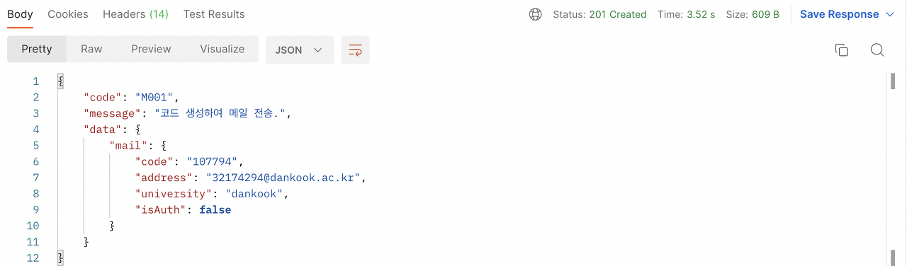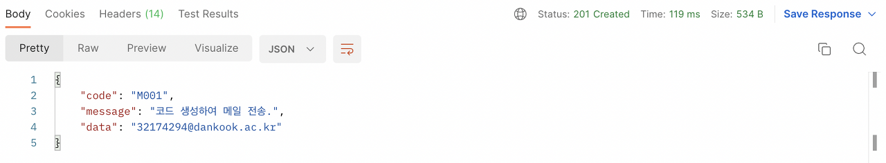 - 클라이언트 측에서 보낸 메일 주소와 코드를 받는다.