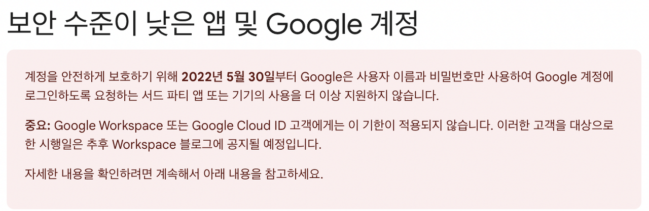 - 보안 수준이 낮은 앱 및 Google 계정에 대한 설정